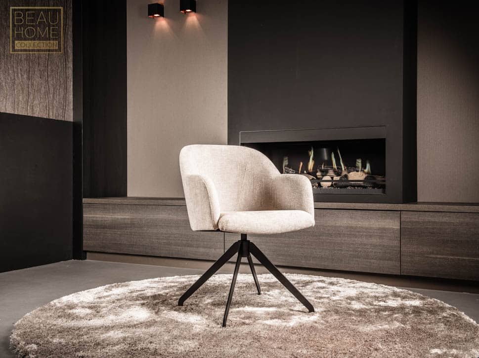 Met zijn minimalistische esthetiek en strakke lijnen past deze stoel naadloos in moderne interieurs. Het ontwerp is doordacht, met een licht gebogen zitvorm die zorgt voor een optimale zithouding en een uitzonderlijk zitcomfort biedt. De ruime kuipzitting met een dik en zacht zitoppervlak maakt lang tafelen een genot, en de metalen x-poot met een 180 graden draaisysteem biedt ultiem gemak bij het gaan zitten en opstaan.